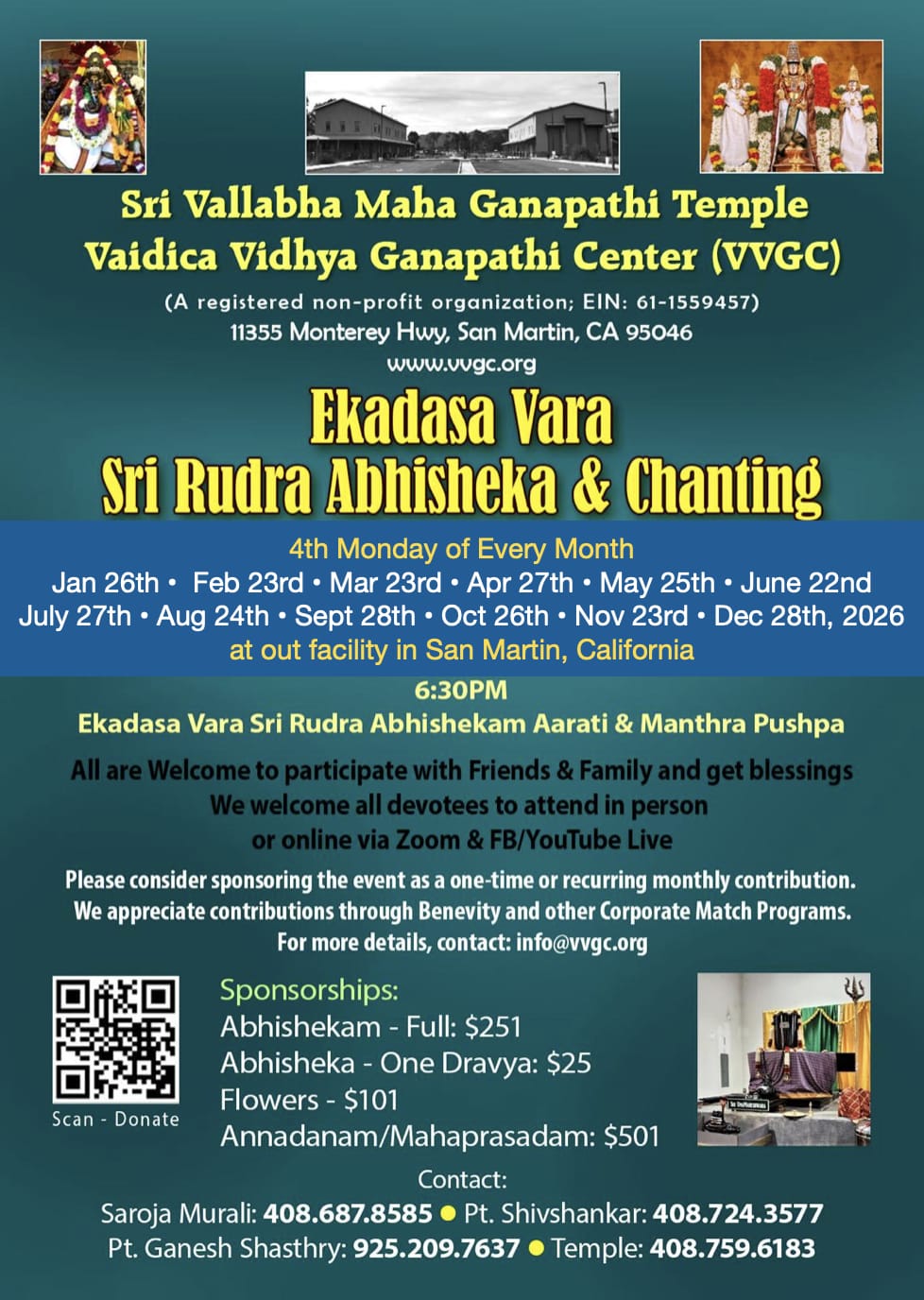 At this event 121 Ritwiks reciting the Sri Rudra 11 times for a total of 1331 times along with Rudra Abhishekam with 11 kinds of Dravyams. This will be followed by Rudra Homam