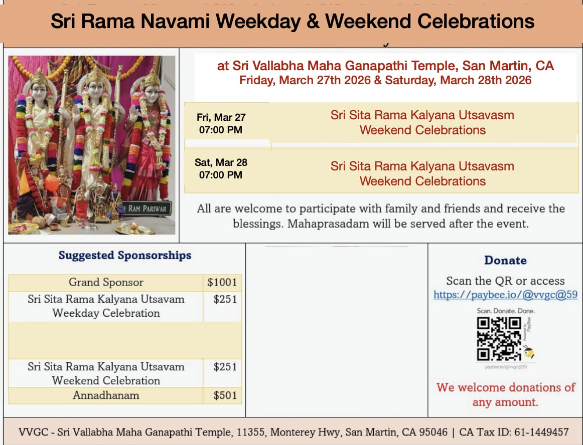 Sri Sita Rama Kalyana Utsavam - Weekend Celebrations